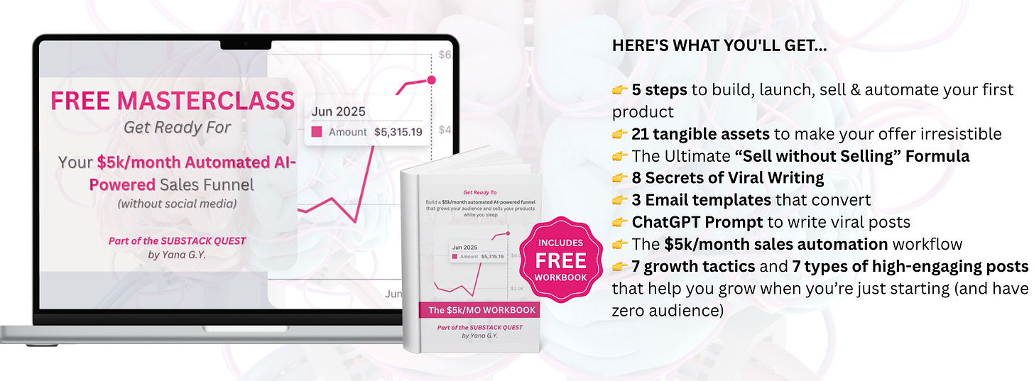 By the end of this Masterclass, youāll have a product ready to sell. And a FREE Workbook to help you get to the $5k/month faster.