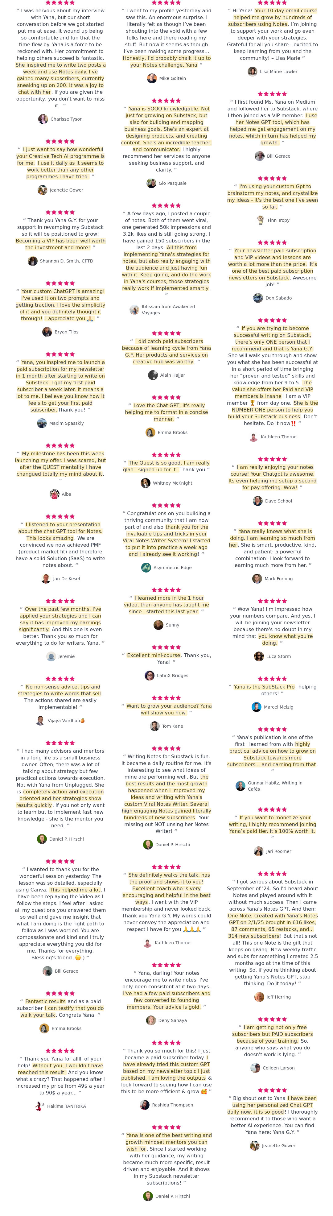 âYana is one of the best writing and growth mindset mentors you can wish for. Since I started working with her guidance, my writing became much more specific, result driven and enjoyable. And it shows in my Substack newsletter subscribtions!â-- Daniel H. @ The Fearless YOU