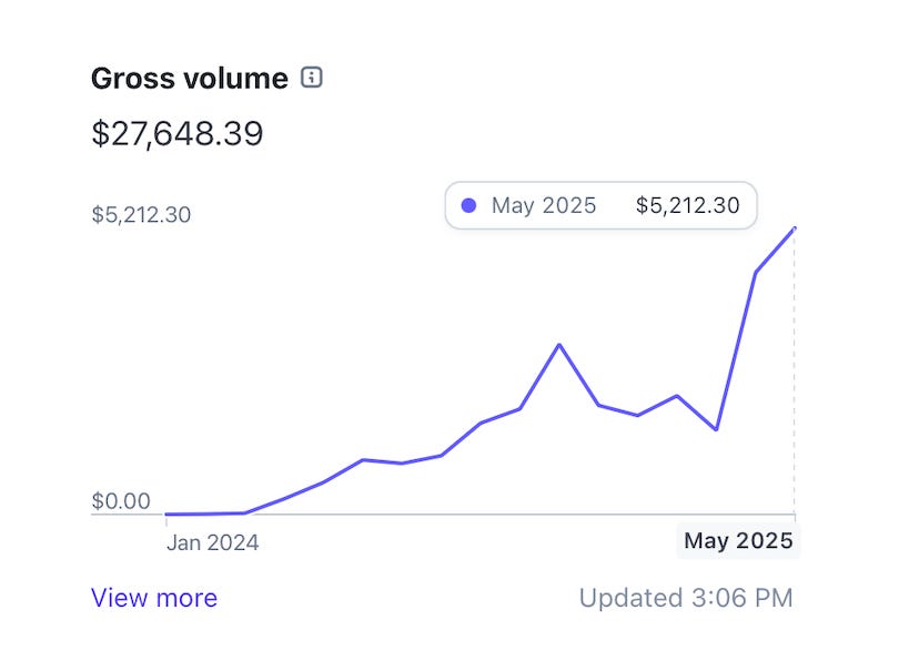 Since then, I grew it into a full-time income business in about a year. This is a screenshot from my Stripe: