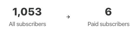 For the three weeks, I grew new 47 subscribers to 1040. And 6 of them are now paid!