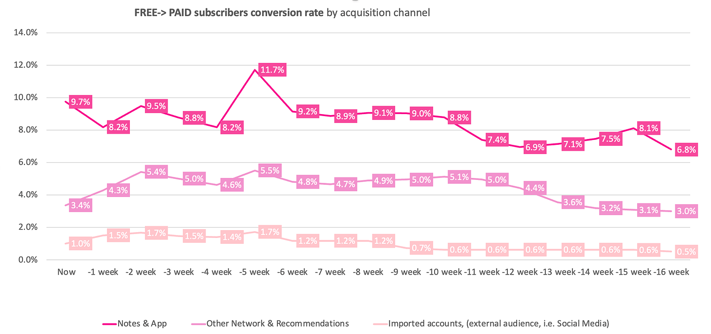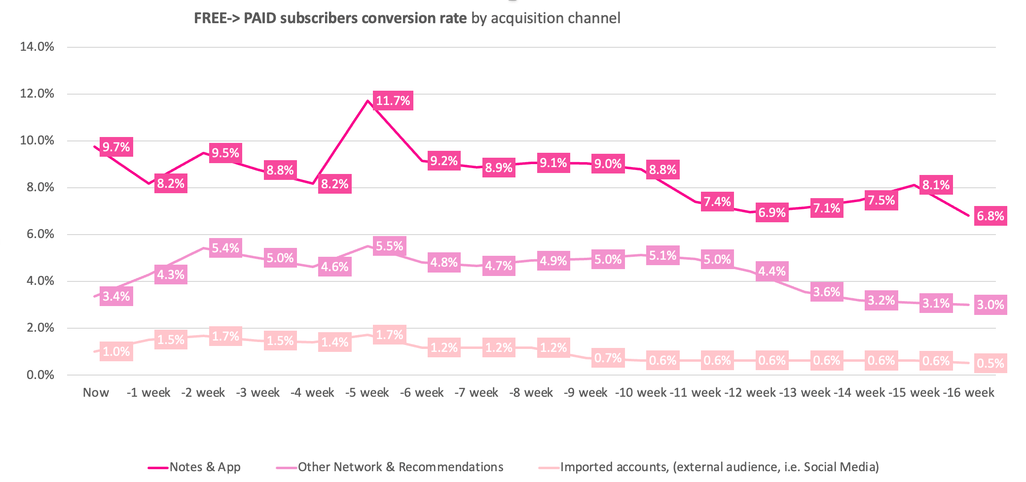 Subscribers coming from Notes and the App in general are much more likely to convert to paid.
