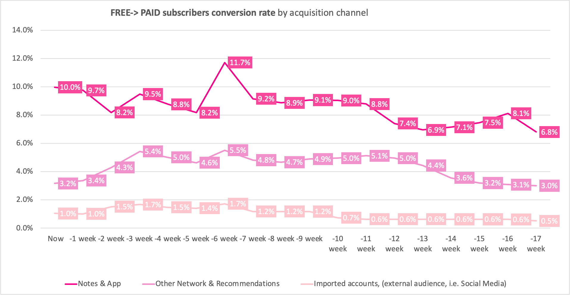 I track that to isolate the effect from Substack alone, as I also have imported subscribers. It’s not 18% but it’s consistently high above the average 3% especially from Substack organic channels, see: